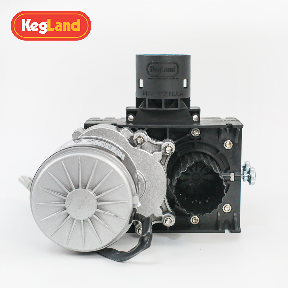 MaltZilla研磨机集成有马达,电机设定一个相对恒定的转速,因为转速太低会花费较多的时间,而转速太快的话就会产生大量的飞末,所以我们集成了可以提供较佳转速的变速箱,通过此变速箱可以提供相对稳定的转速和高扭力。